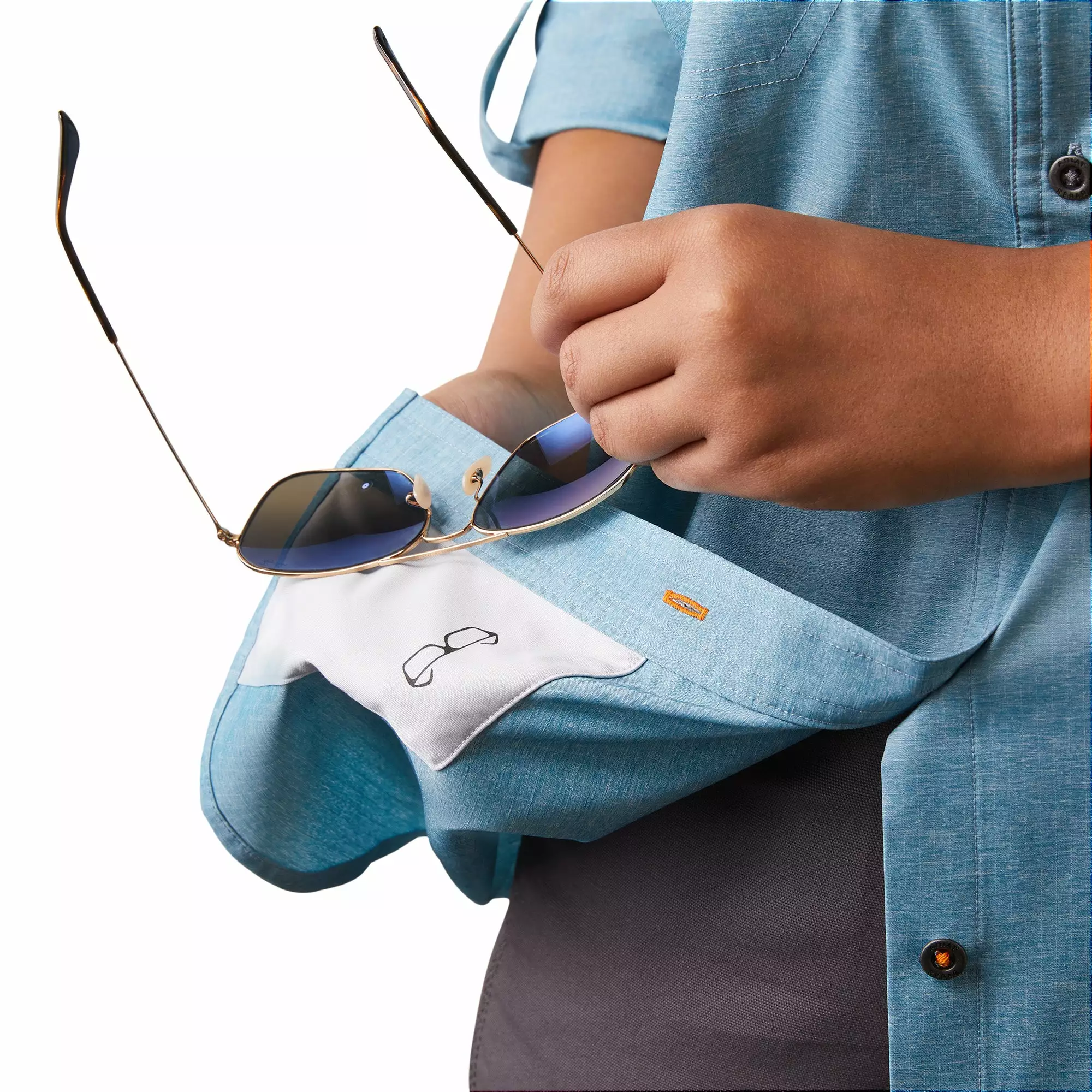 - Button flap chest pockets.