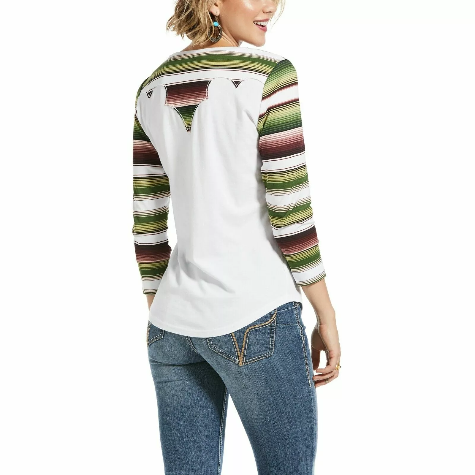 Ariat® Ladies White & Stripe Sombrero 3/4 Sleeve T-Shirt 10032816