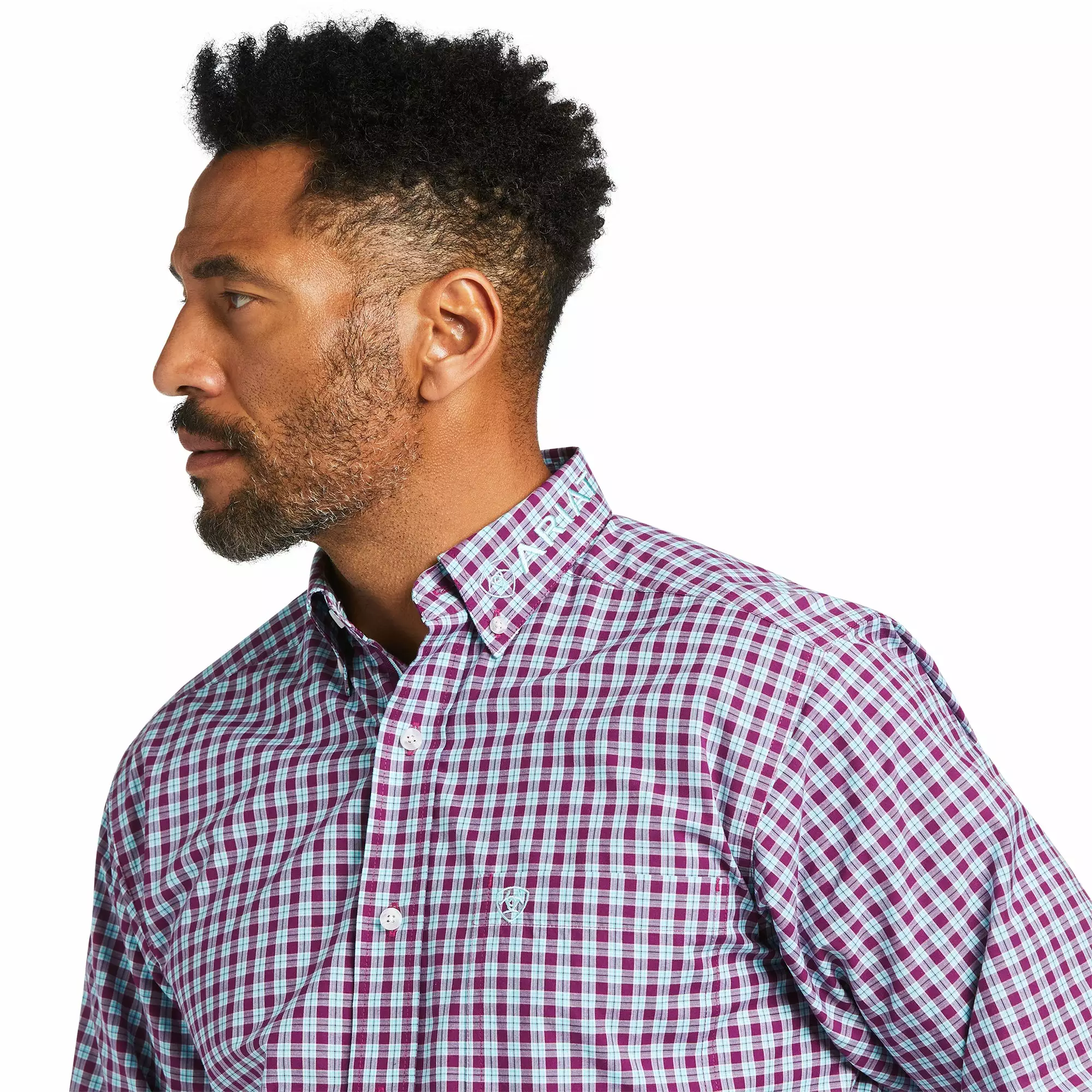 - Ariat® purple plaid fitted button down shirt